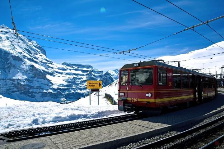 坐上登山红皮小火车,将少女峰的美收入眼中。