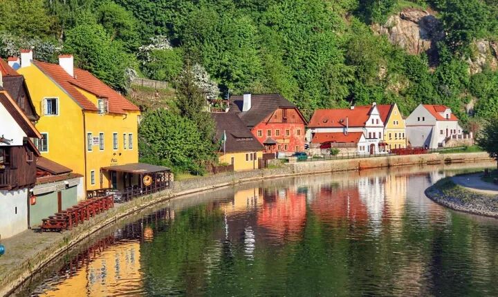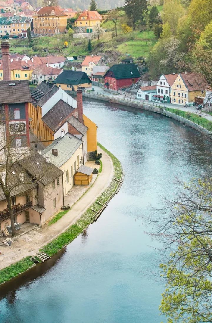 贯穿小镇的伏尔塔瓦河将其分成两半,一边是山丘城堡另一边是旧城区。