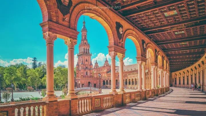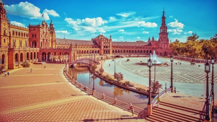 虽然西班牙每个城市都有一个西班牙广场,但是塞维利亚的西班牙广场绝对不能错过,实在是太壮阔、太美了!