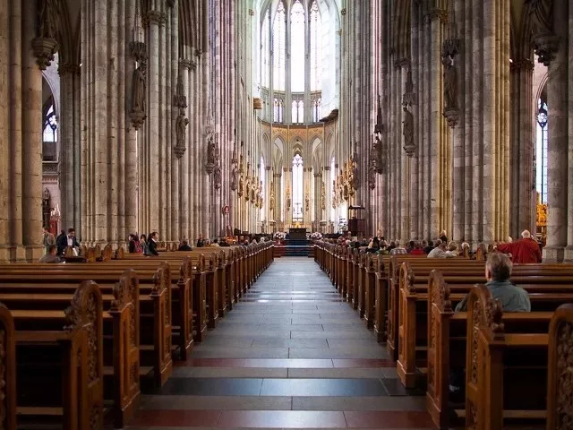 大教堂规模浩大,高塔直向苍穹,象征人与上帝沟通的渴望。