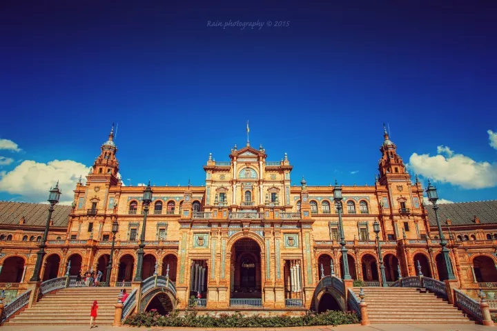 虽然西班牙每个城市都有一个西班牙广场,但是塞维利亚的西班牙广场绝对不能错过,实在是太壮阔、太美了!